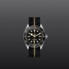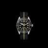 Caixa de 39 mm em aço, Bracelete em tecido, Caixa de 39 mm em aço com acabamento polido e acetinado, Luneta giratória unidirecional em aço com disco graduado de 60 minutos em alumínio anodizado preto mate, marcas e algarismos em rosa dourado, Calibre de Manufatura MT5402 (COSC); Movimento mecânico de corda automática com sistema de rotor bidirecional, Preto, côncavo, Coroa de rosca em aço com a rosa TUDOR em relevo, tubo da coroa em aço escovado com acabamento circular, escovado e acetinado, Vidro de safira côncavo, Estanque até 200 m, Bracelete em tecido preto e bege com faixa dourada e fivela