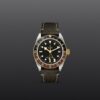 Coroa de rosca com a rosa TUDOR gravada e lacada em preto, com tubo da coroa em alumínio anodizado preto. Aço revestido por uma camada de ouro amarelo de 0,3 mm