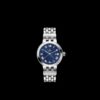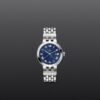Caixa de 30 mm em aço, Mostrador azul, Caixa de 30 mm em aço com acabamento polido, Luneta lisa em aço com acabamento polido, Movimento mecânico de corda automática, Calibre T201, Azul, Coroa de rosca em aço com espinela em cabochão azul transparente, Vidro de safira côncavo, Estanque até 100 m, Bracelete em aço com fecho desdobrável e fecho de segurança; Elementos de fixação em aço