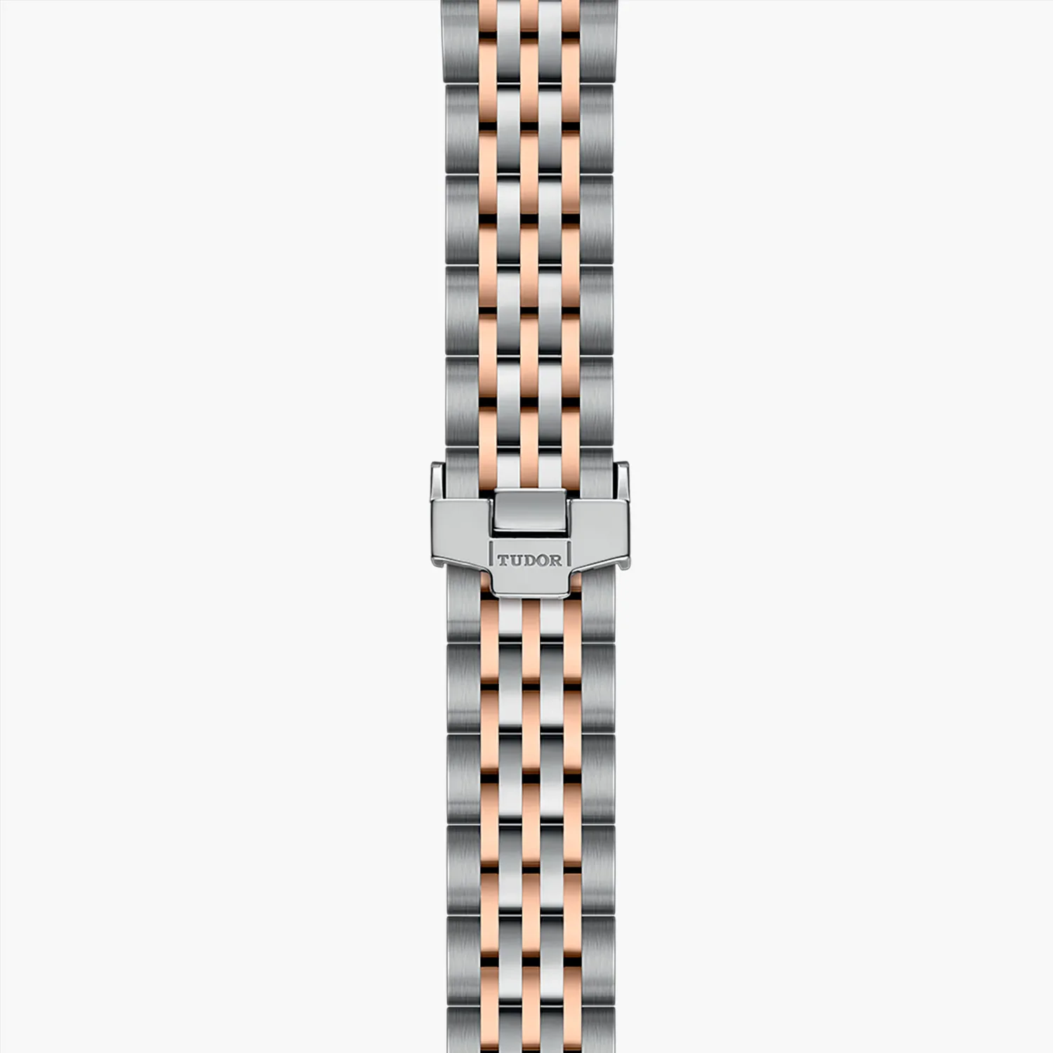 Primeiros elos centrais em aço ou ouro rosa maciço. Restantes elos centrais em aço ou aço revestido com uma camada de ouro rosa de 0,2 mm