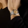 Cor champagne escura, com marcadores de horas aplicados