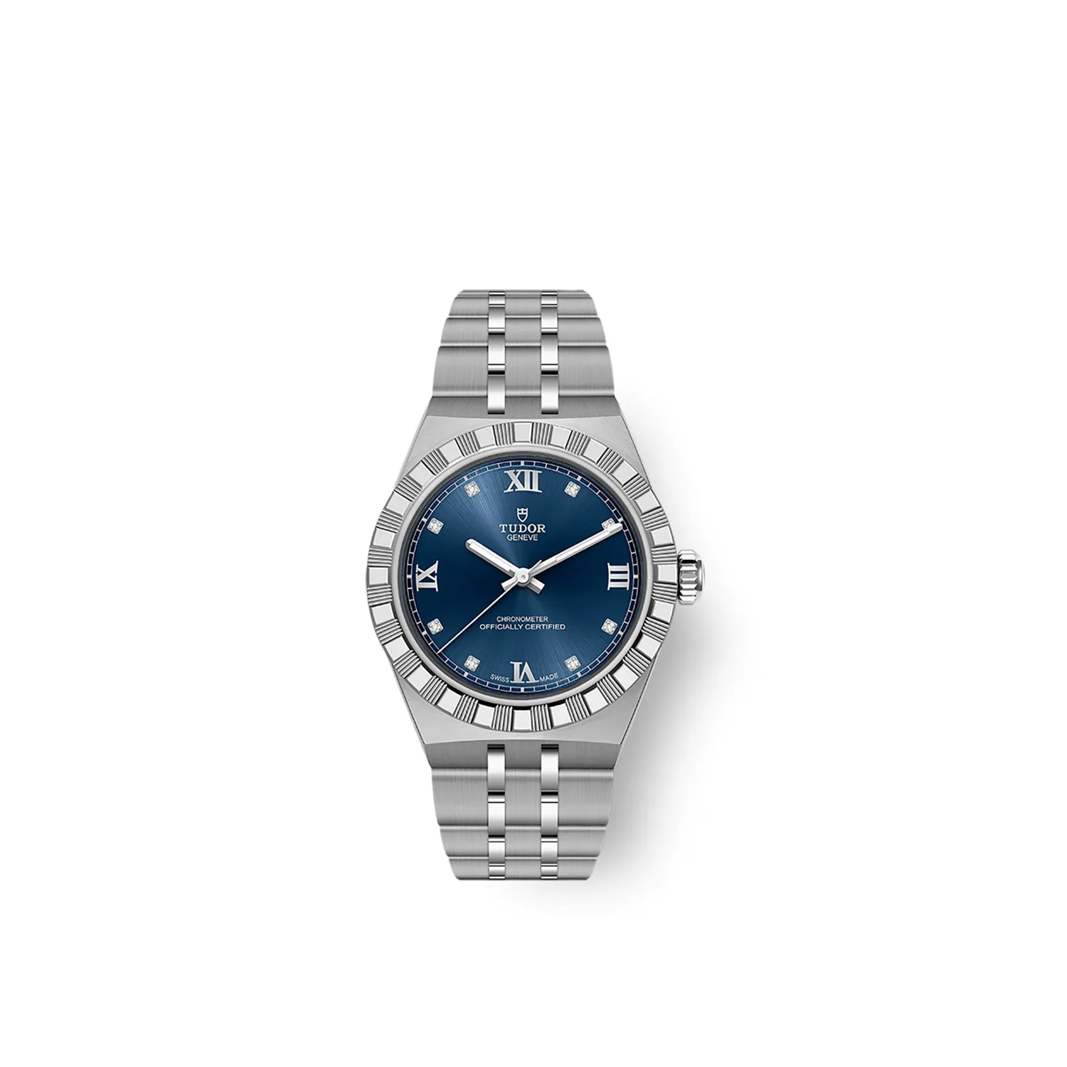 Coroa de rosca em aço inoxidável com o logótipo TUDOR em relevo