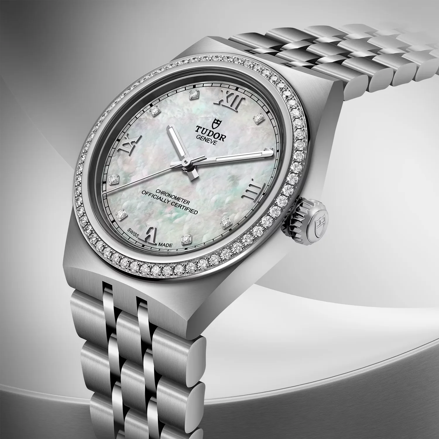 Coroa de rosca em aço inoxidável com o logótipo TUDOR em relevo