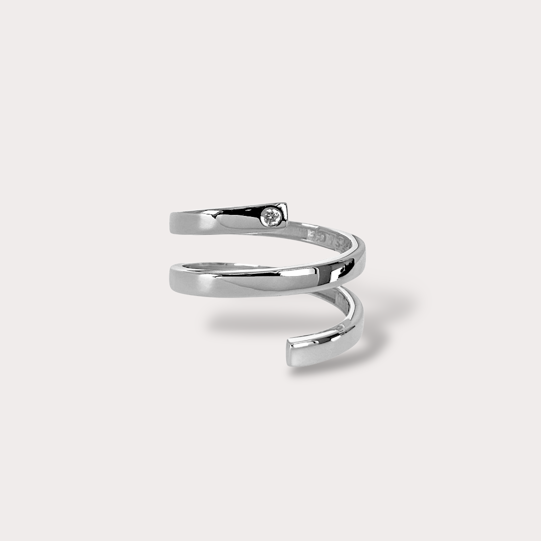 Anel em ouro branco 18K com 0,01ct em diamante natural – delicadeza e movimento da Coleção Vortex.