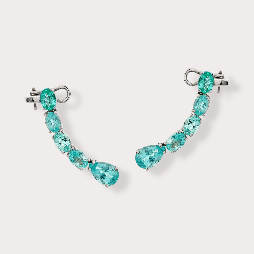 Brinco Ear Cuff em Ouro Branco com Turmalinas Paraíba – Coleção Veneza