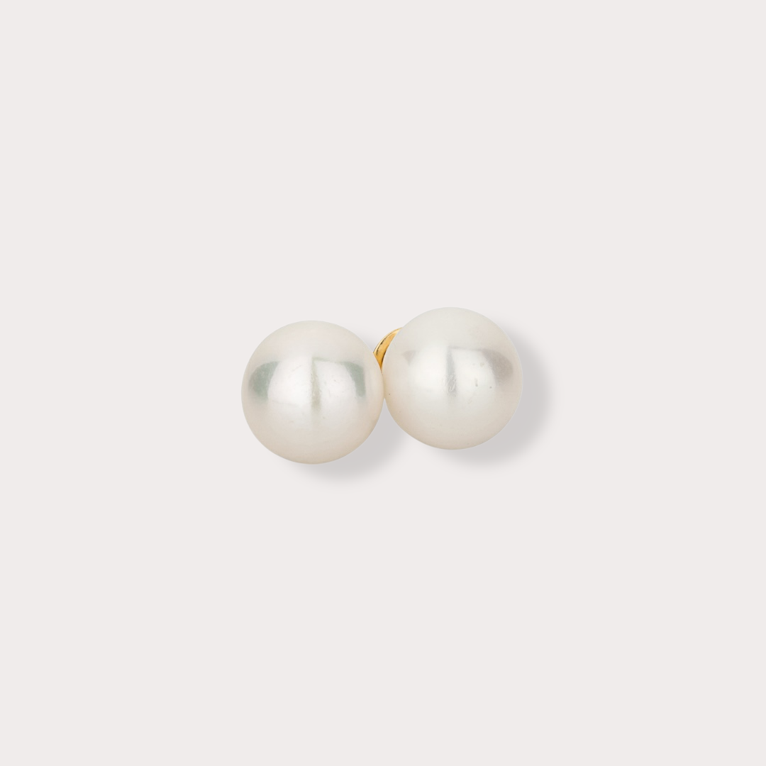 Brinco em ouro amarelo 18K com pérolas South Sea de 12 a 13mm, símbolo de elegância e sofisticação natural.