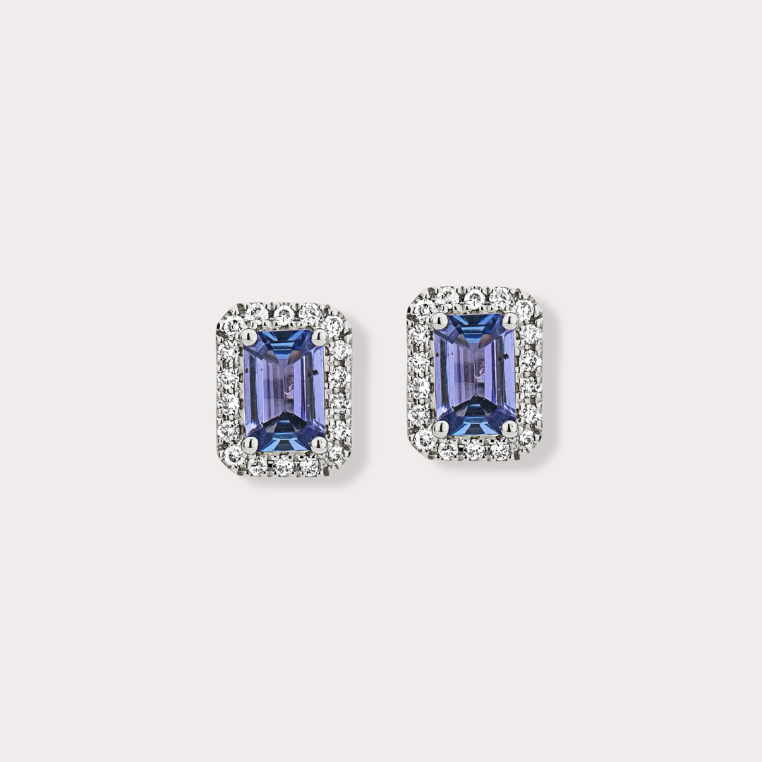 Brinco em Ouro Branco com Tanzanitas e Diamantes – Coleção Toscana