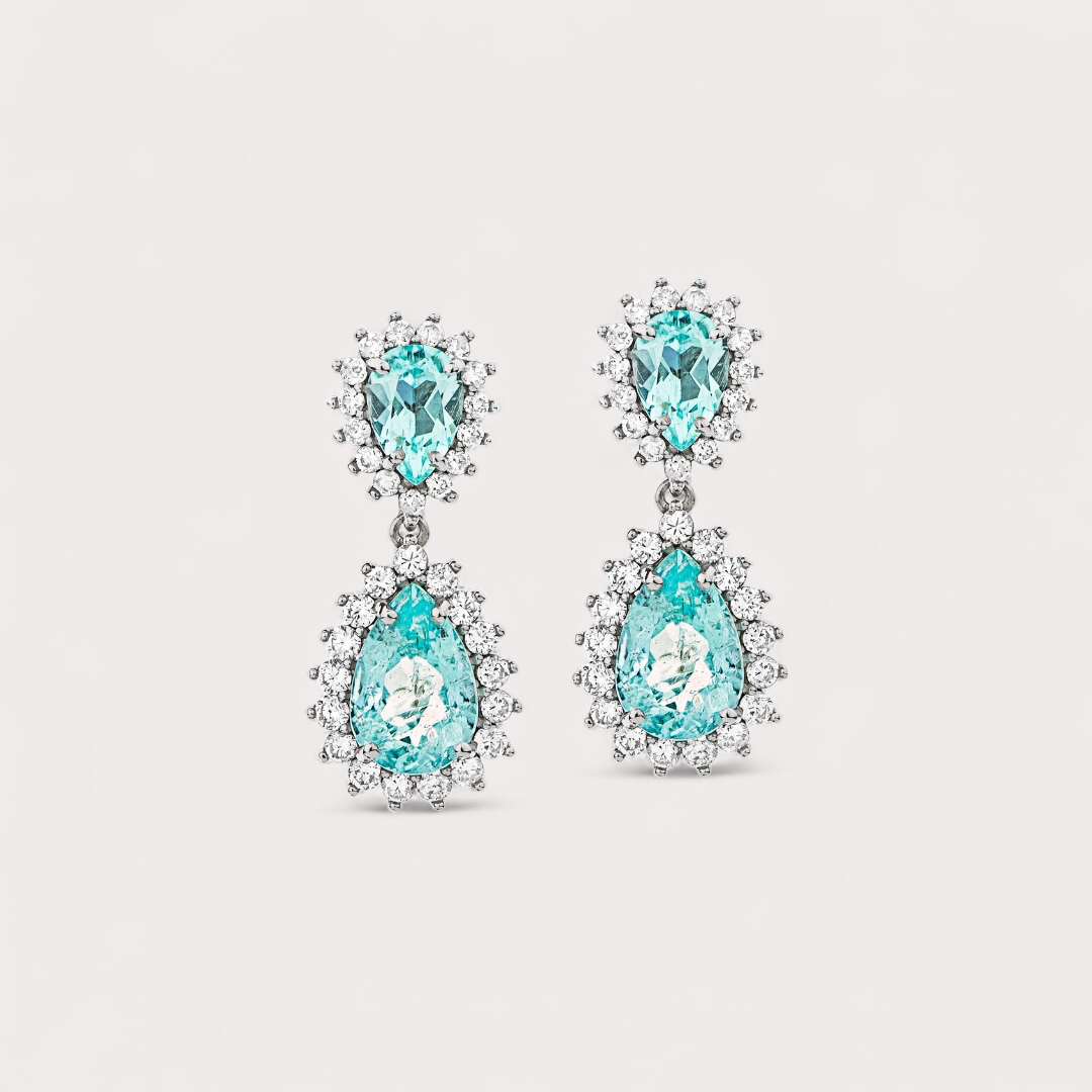 Brinco em Ouro Branco com Turmalinas Paraíba e Diamantes – Coleção Veneza