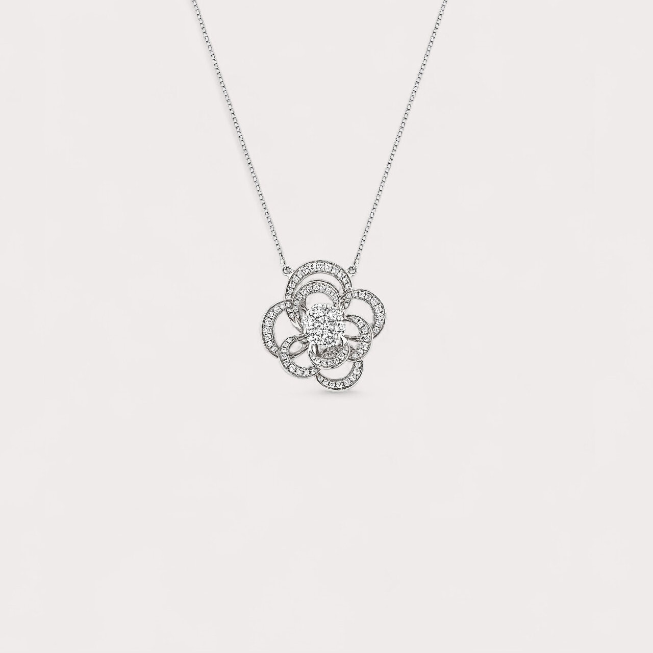 Colar em ouro branco 18K com 0,68ct em 99 diamantes naturais – sofisticação atemporal da Coleção Camélia.