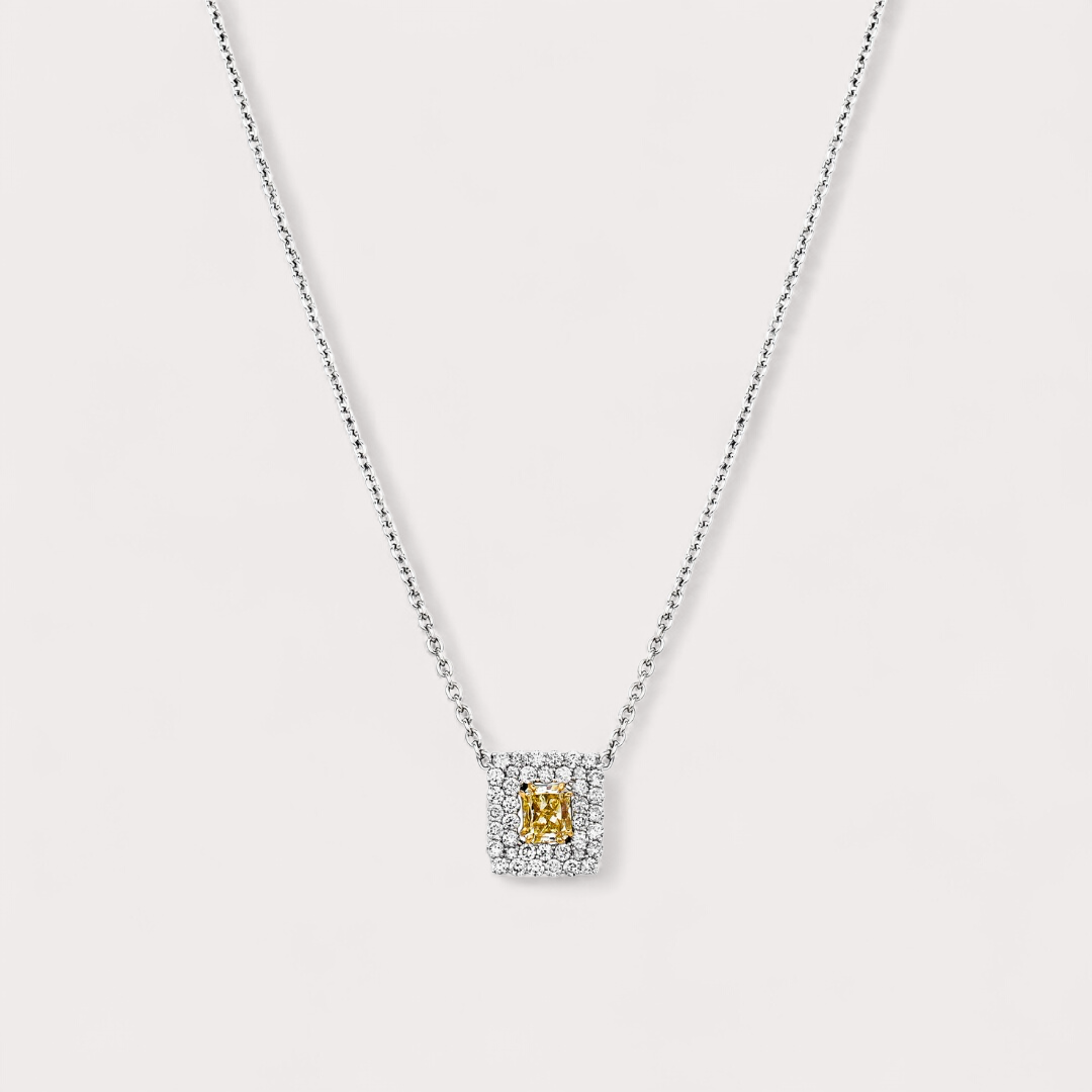 Colar em Ouro Branco com Diamantes Yellow Fancy e Diamantes – Coleção Florença